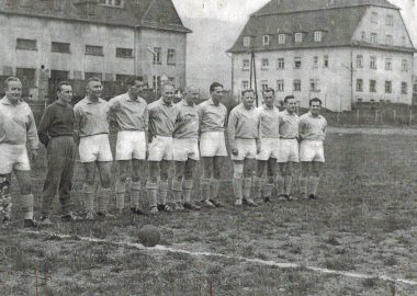 Drużyna Seniorów rok 1960. Eugeniusz Połeć, Świech, Zbigniew Majeran, Aleksander Mucha, Jan Pach, Wincenty Fitrzyk, Zbigniew Zborowski, Andrzej Mucha, Leszek Gąsior, … , Andrzej Sipak, Paweł Lisok.